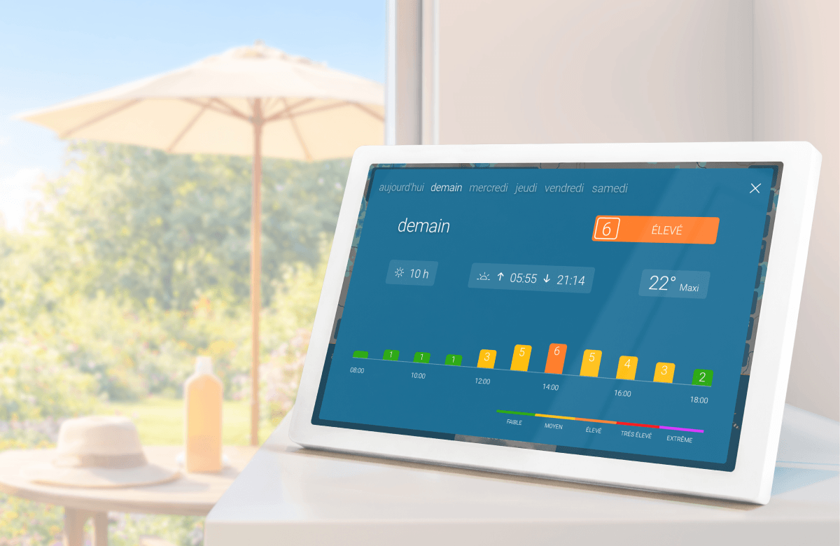 L’indice UV indique quand le soleil est particulièrement intense. Pratique pour les familles, les sportifs ou les jardiniers : il vous aide à savoir quand vous protéger ou quand faire une pause à l’ombre.