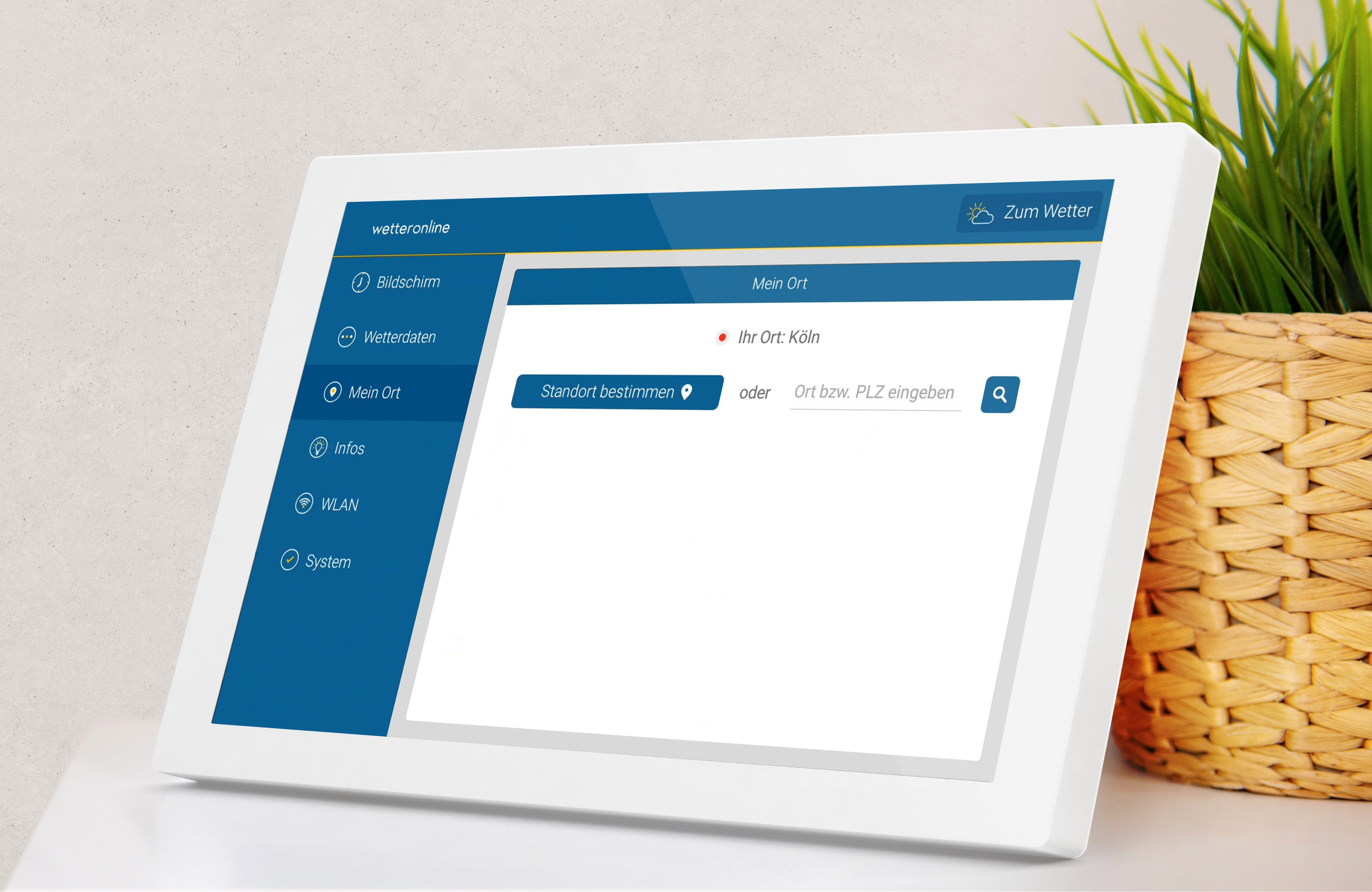 Die Wetterstation bestimmt bei der Inbetriebnahme des Gerätes Ihren Standort automatisch. Wenn Sie möchten, können Sie hier im Menüpunkt „Mein Ort“ einen anderen Standort eingeben, der nicht Ihrem aktuellen Aufenthaltsort entspricht. Auch die Rückkehr zur automatischen Standortbestimmung ist hier jederzeit möglich.