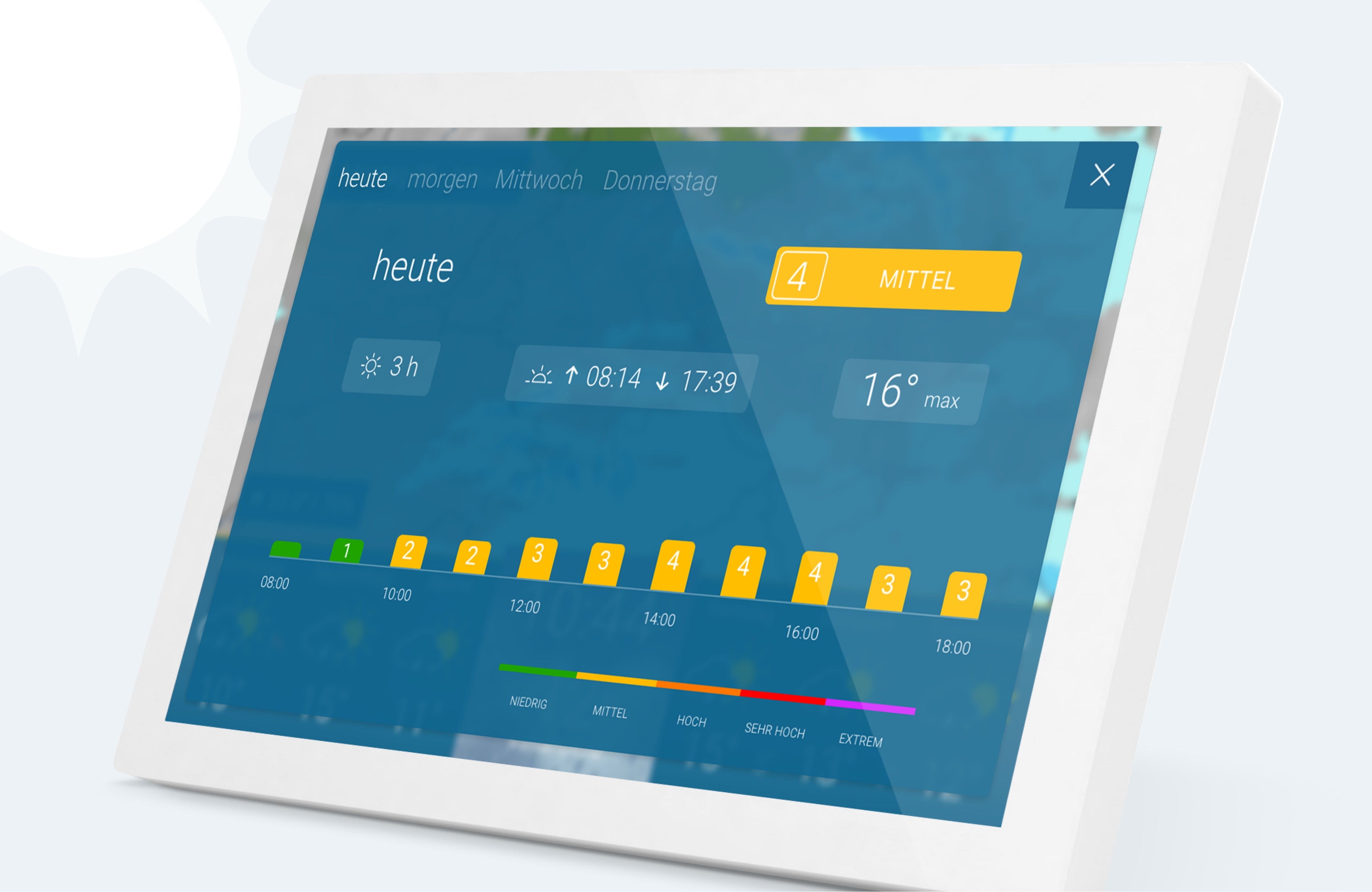 Informationen über die Strahlungsintensität geben einen Hinweis darauf, welche Schutzmaßnahmen Sie aktuell und in den kommenden fünf Tagen ergreifen sollten.