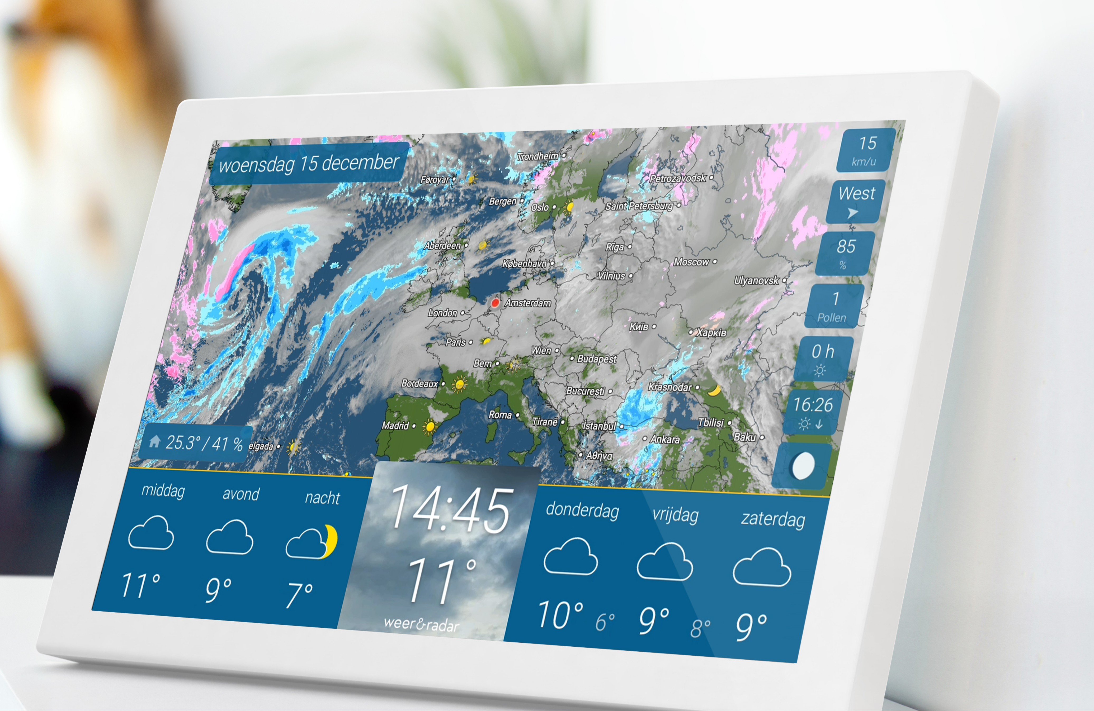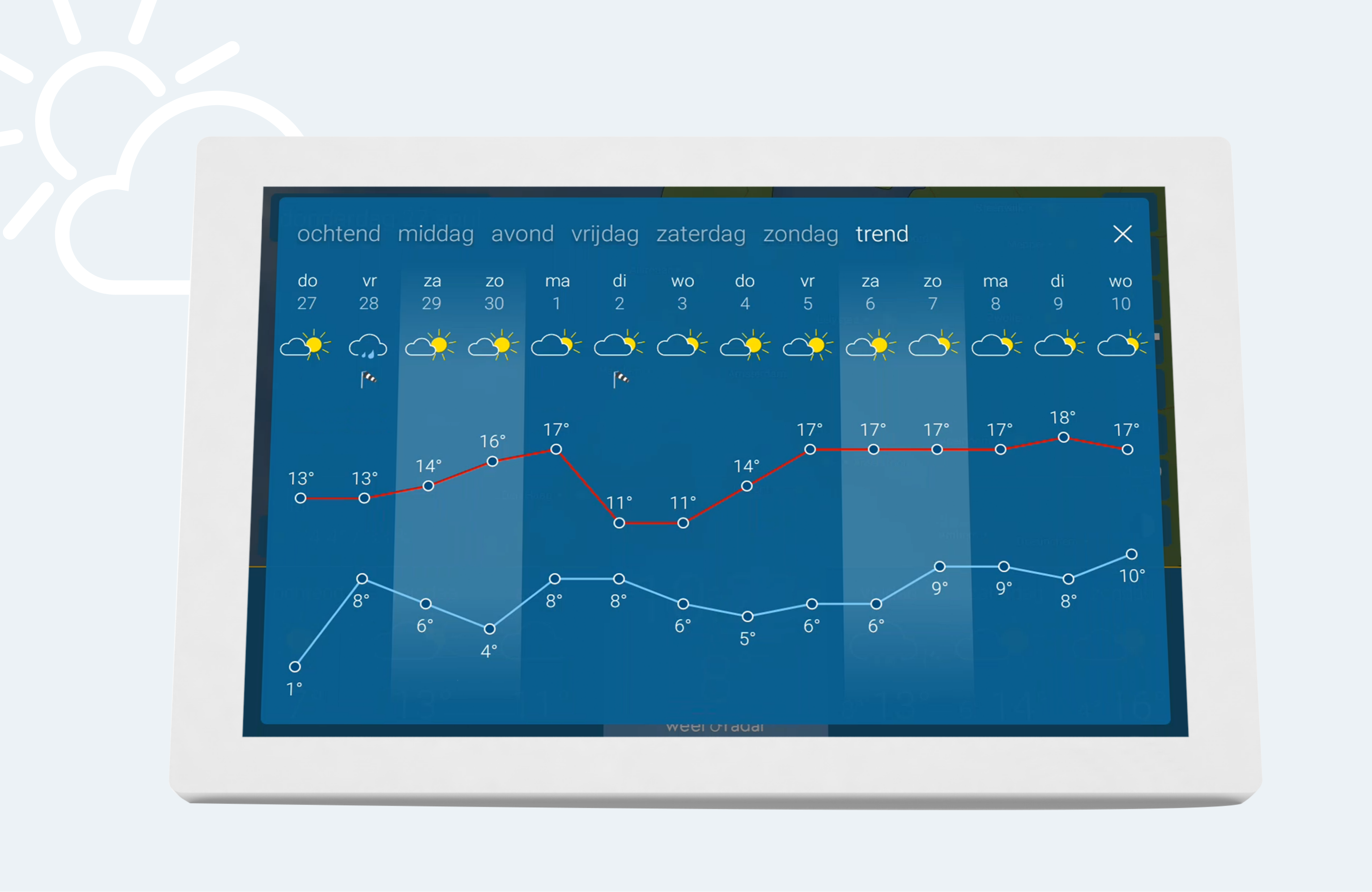 In het onderste schermgedeelte ziet u links het weer gedurende de dag en rechts en de weersontwikkeling voor de komende dagen.